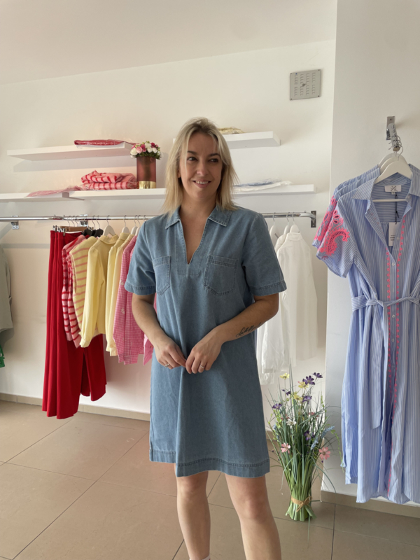 Jeans kleedje, los model, en mooi lang genoeg, niet te kort